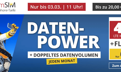 Nur bis zum 26. Februar 2020 könnt Ihr den Mega-Deal des Jahres abstauben, statt den schon günstigen 12,99€ für 5 GB All-Net Flat inkl. LTE, zahlt Ihr nur sagenhafte 9,99€ und das dauerhaft, eine Ersparnis von 13€ pro Monat, also 56%. Allerdings müsst Ihr Euch beeilen, denn die Aktion läuft nur noch bis zum 26. Januar bis 11 Uhr! Zum Bestellen, klickt einfach auf das untere Bild oder auf die Anbieterseite von WinSIM www.winsim.de